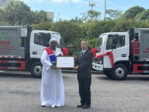 The event also marked the handover of three custom-designed waste management trucks to Banjul, built specifically to meet the city’s narrow roads, dense neighborhoods, and sharp intersections. Mayor Lowe described the trucks as an important step in modernizing Banjul’s sanitation system through research-driven solutions.